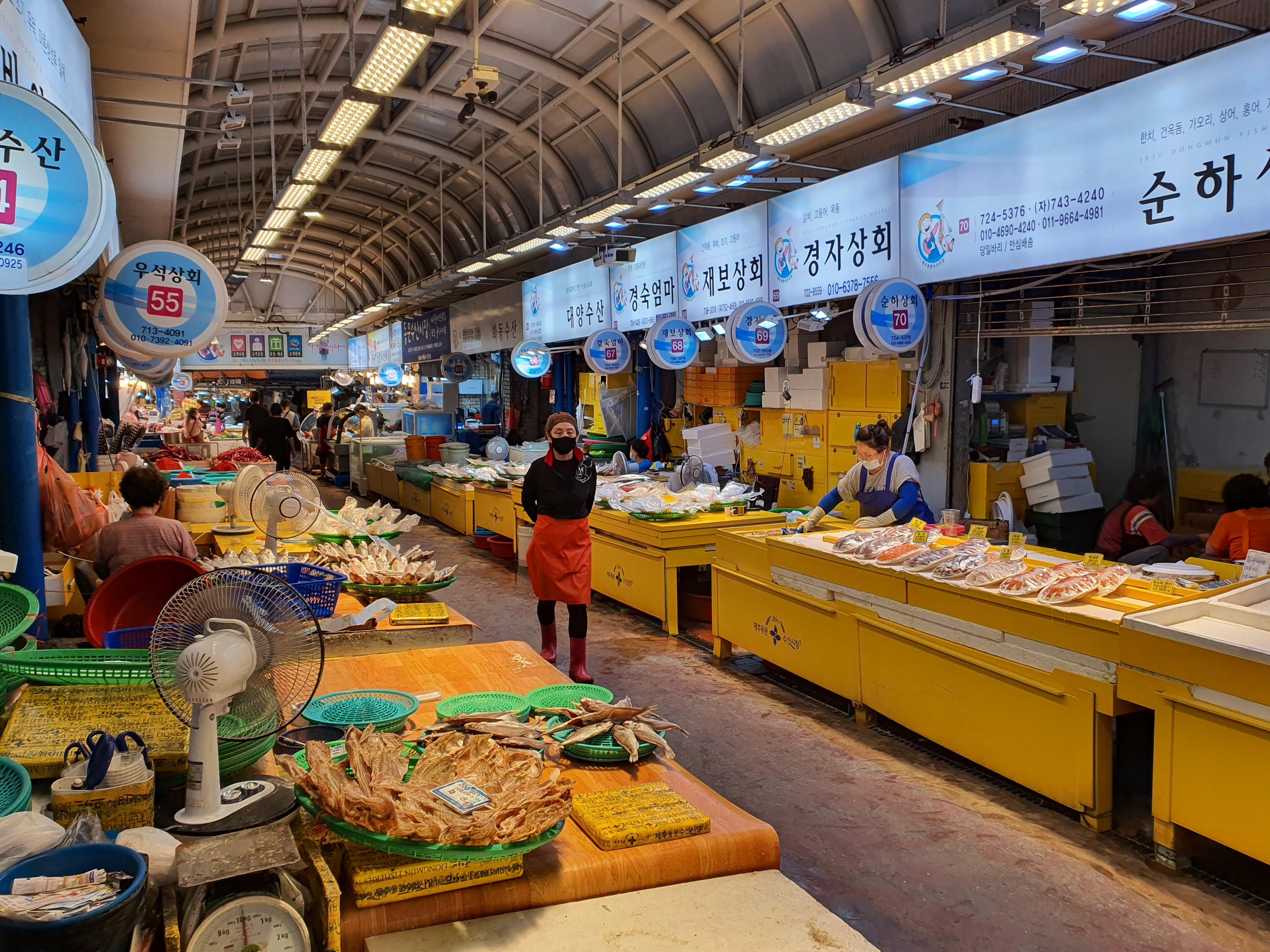다양한 수산품을 살 수 있는 곳이며, 관광객들 대상으로 포장회를 싸게 팔기도 한다.