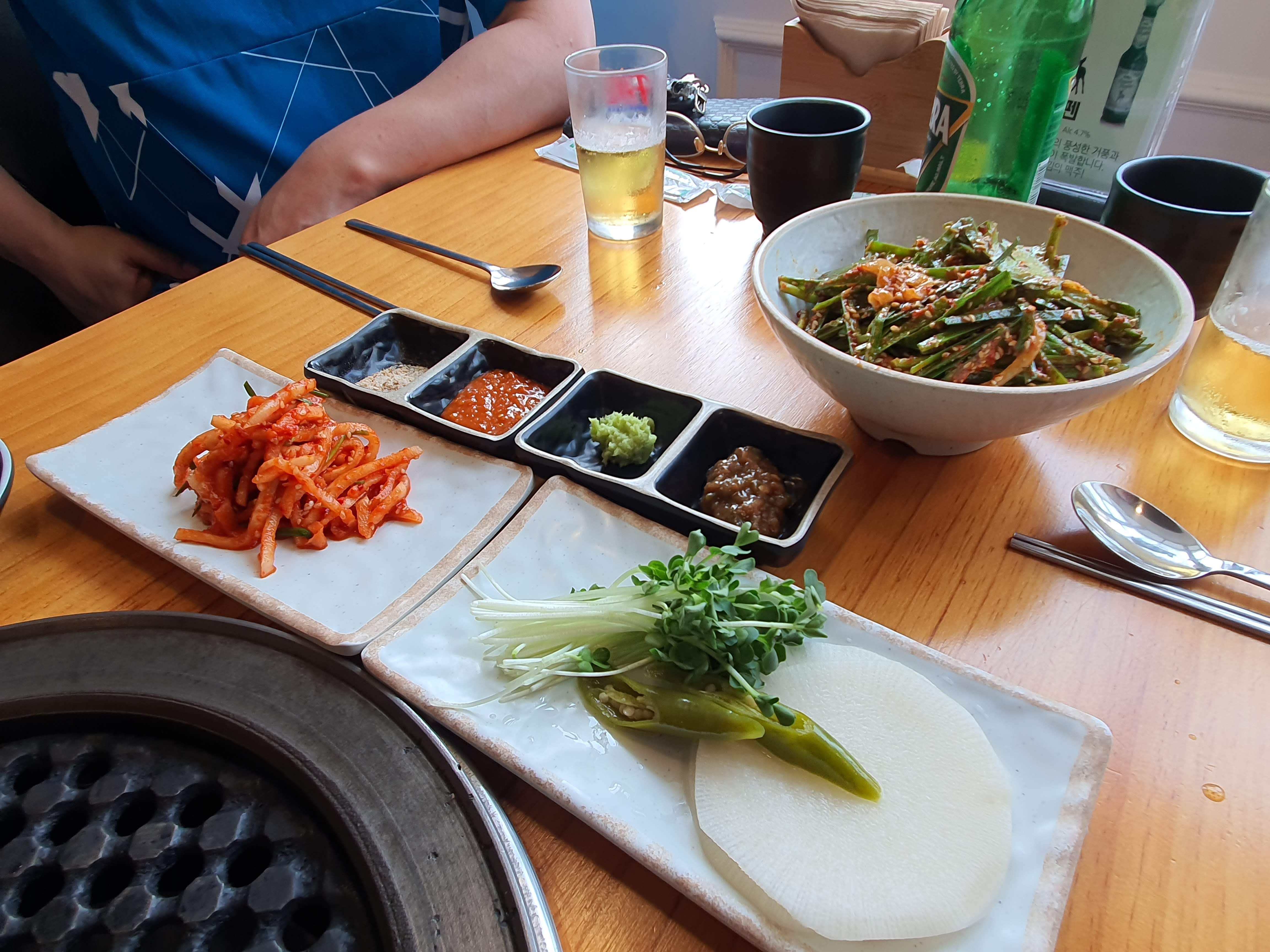 우선 기본 세팅입니다. 취향에 맞춰 고기를 곁들여 먹도록 세심한 배려가 돋보입니다.