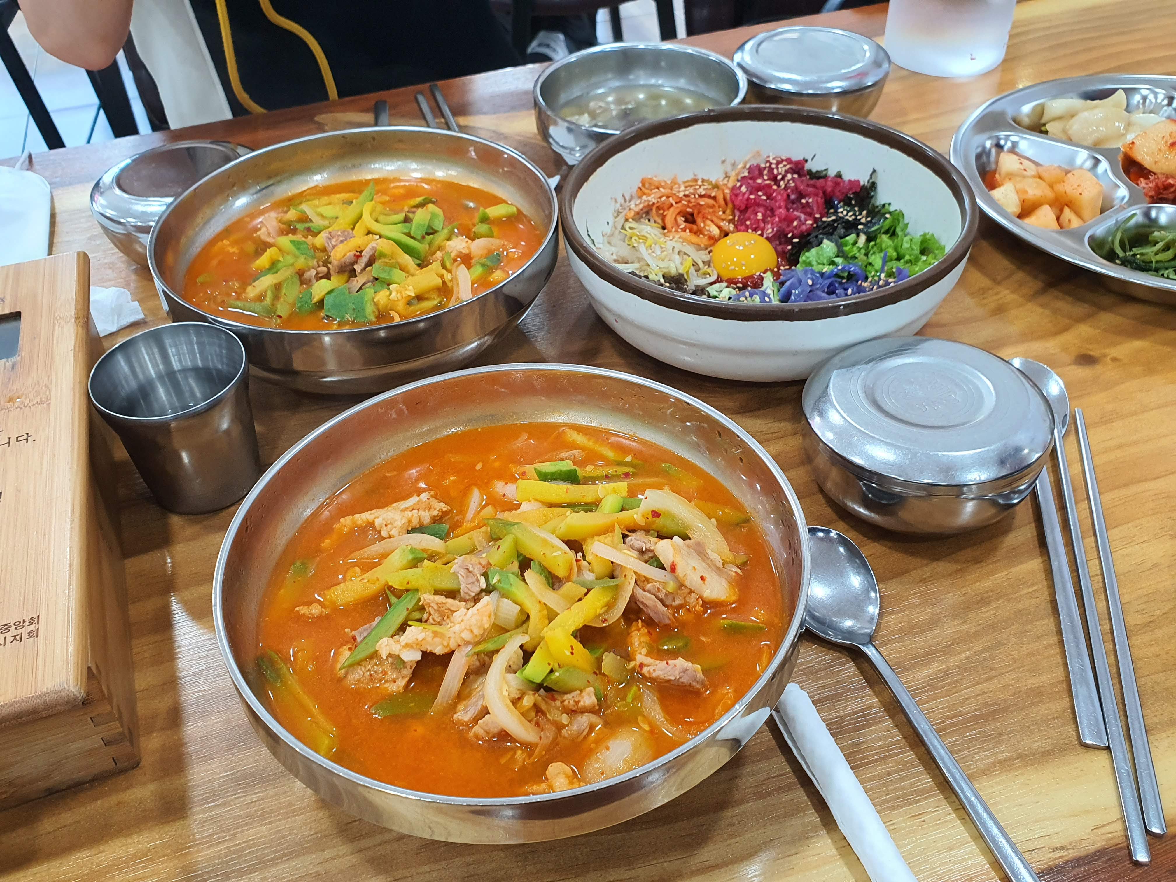주문한지 금방... 애호박찌개와 육회비빔밥이 나옵니다.