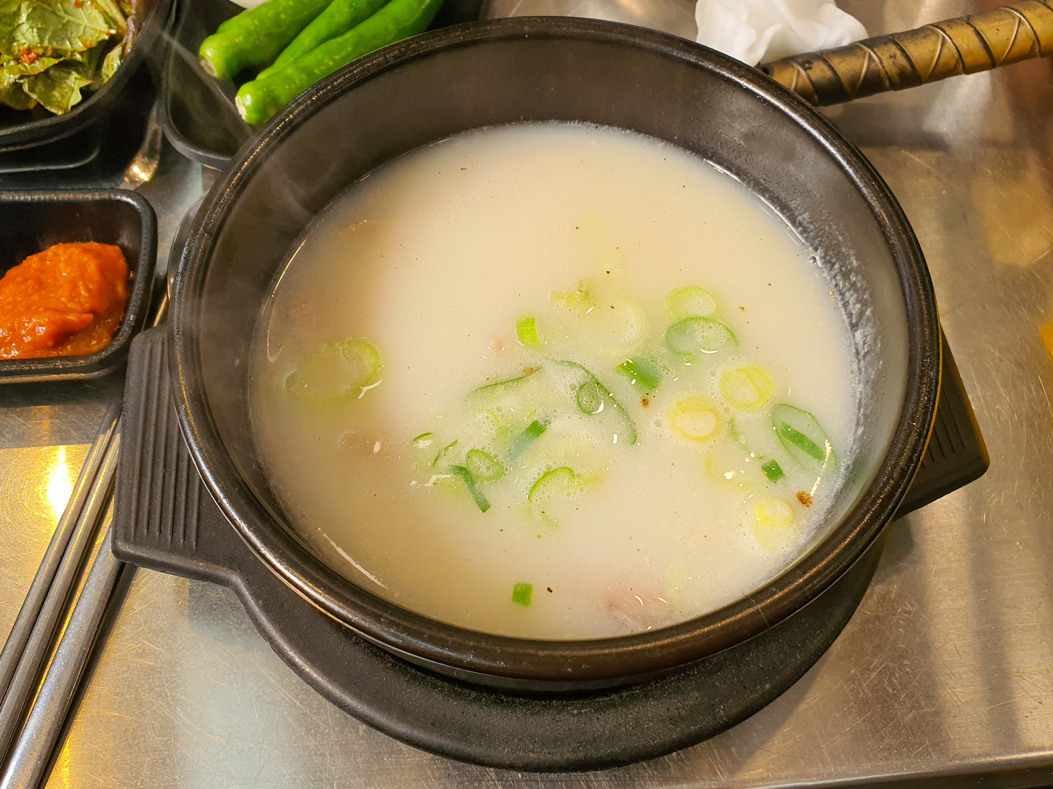 등장한 돼지국밥, 맛은 정말 깔끔하고 진하다. 이 한 그릇을 위해 뼈 60키로 그램을 고았다고 하니... 국물을 더 달라고 말 못하겠다.