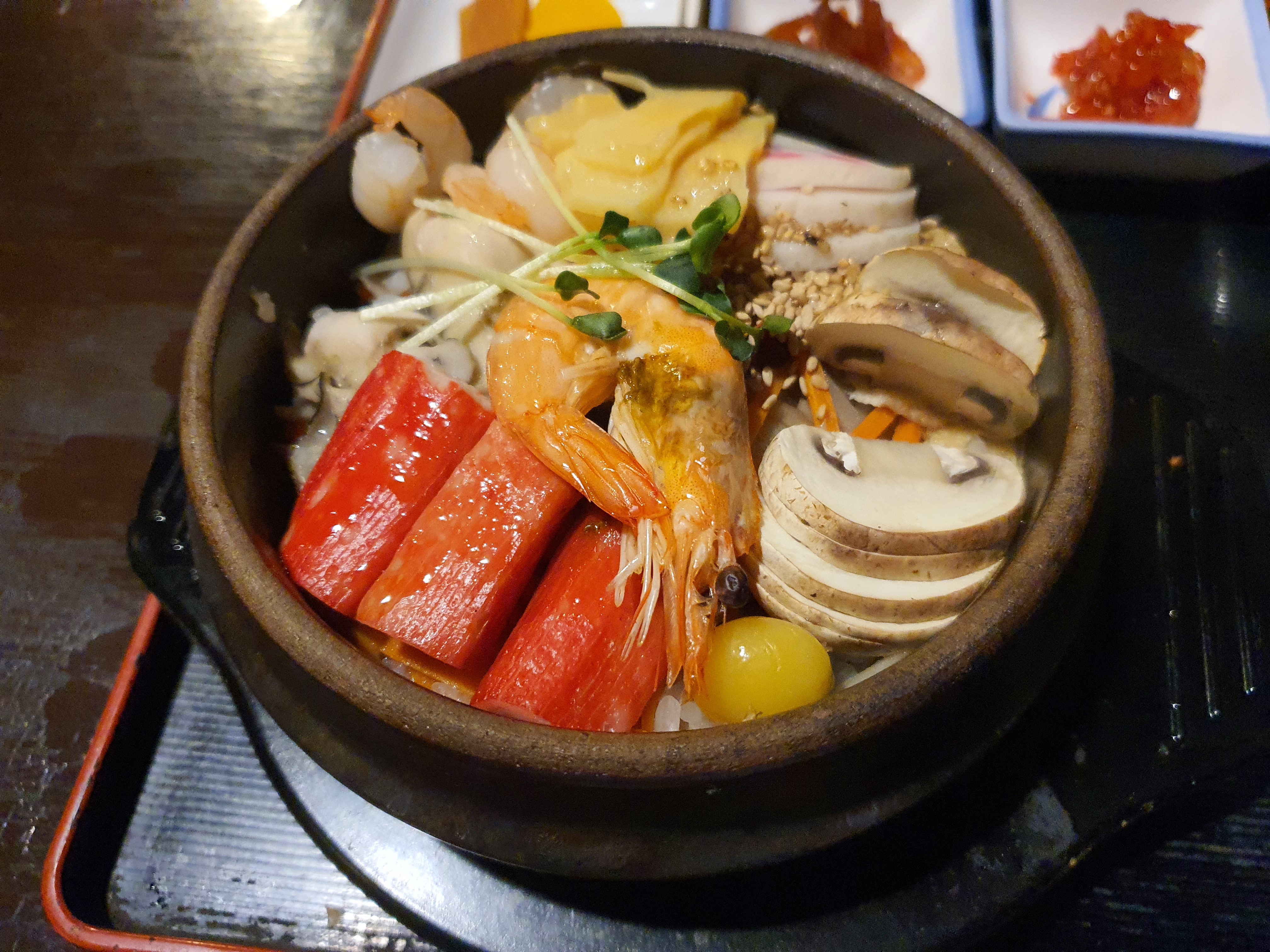 조금에서 제공하는 솥밥은 세 종류가 있는데, 송이와 전복 그리고 일반 솥밥이 있었다. 송이와 전복 모두 건강의 상징인데, 주문은 일반 솥밥인 조금 솥밥을 주문했다. 주문하고부터 20분 정도 소요되었는데, 플레이팅은 아래 사진과 같다.