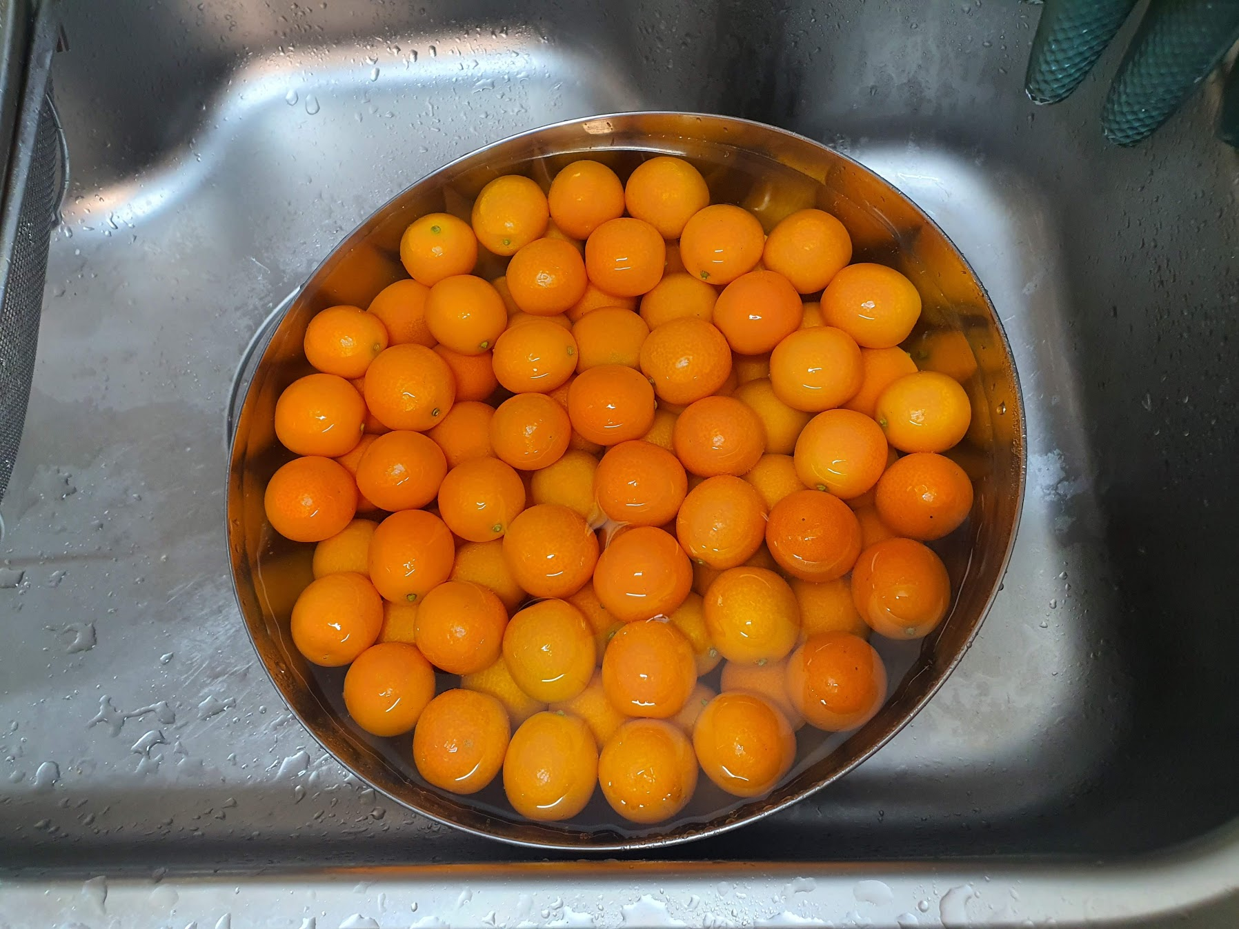 3. 냄비에 금귤이 잠길 정도로 차가운 물을 넣고 끓인다 끓어오르면 물 버리고 씻는다.